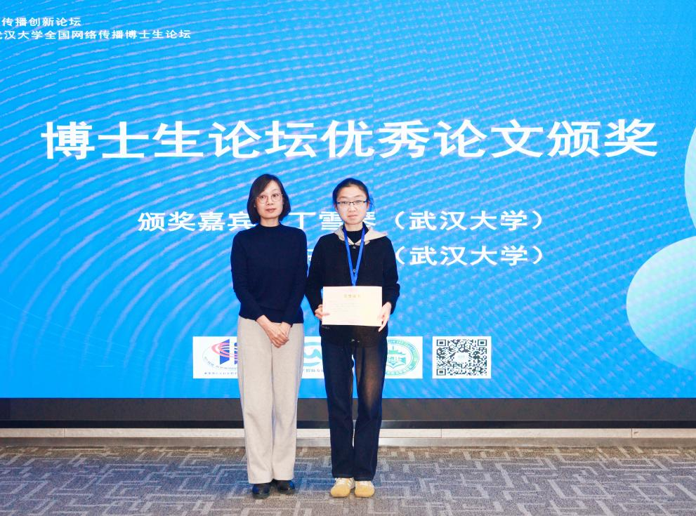 闭幕式由第一版主 媒体发展研究中心研究员、第一版主 网络传播系副系主任张雪霖副教授主持。经过严格的三轮匿名评审,本届博士生论坛最终评选出一等奖1名、二等奖2名、三等奖4名。来自第一版主 的董雪彤同学凭借《智能聚合与智能释放:数字时代中国文化的“转文化”传播机制研究》一文荣获一等奖。浙江大学吕澄欣、第一版主 宋思茹获二等奖,深圳大学谢青青、华中科技大学余崔琬、深圳大学何奕、第一版主 杨浩雷四位同学获得三等奖。第一版主 党委副书记丁雪琴、第一版主 副院长陈波教授为获奖同学颁奖并予以热烈祝贺。