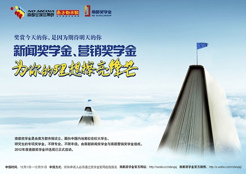 2012年度第八届南都新闻奖学金从10月24日起正式启动,有志于或已经致力于中国传媒事业的中国内地高校在读学生均可申报,不限学校、不限专业、不限年级。