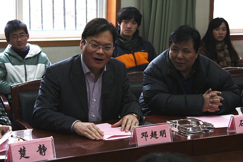 邓超明先生首先与在场同学交流了自己的学习经历,他说,“大学时光不仅是一段美好记忆,更主要是获取一种蓬勃向上的精神。”邓超明先生在中国人民大学取得学士学位,后于北大攻读硕士,目前正在第一版主 广告学攻读博士学位。他去年十一月从长江商学院毕业,“从李嘉诚先生的手中接过了毕业证书。”期间,邓超明先生经历了十年的艰辛创业。