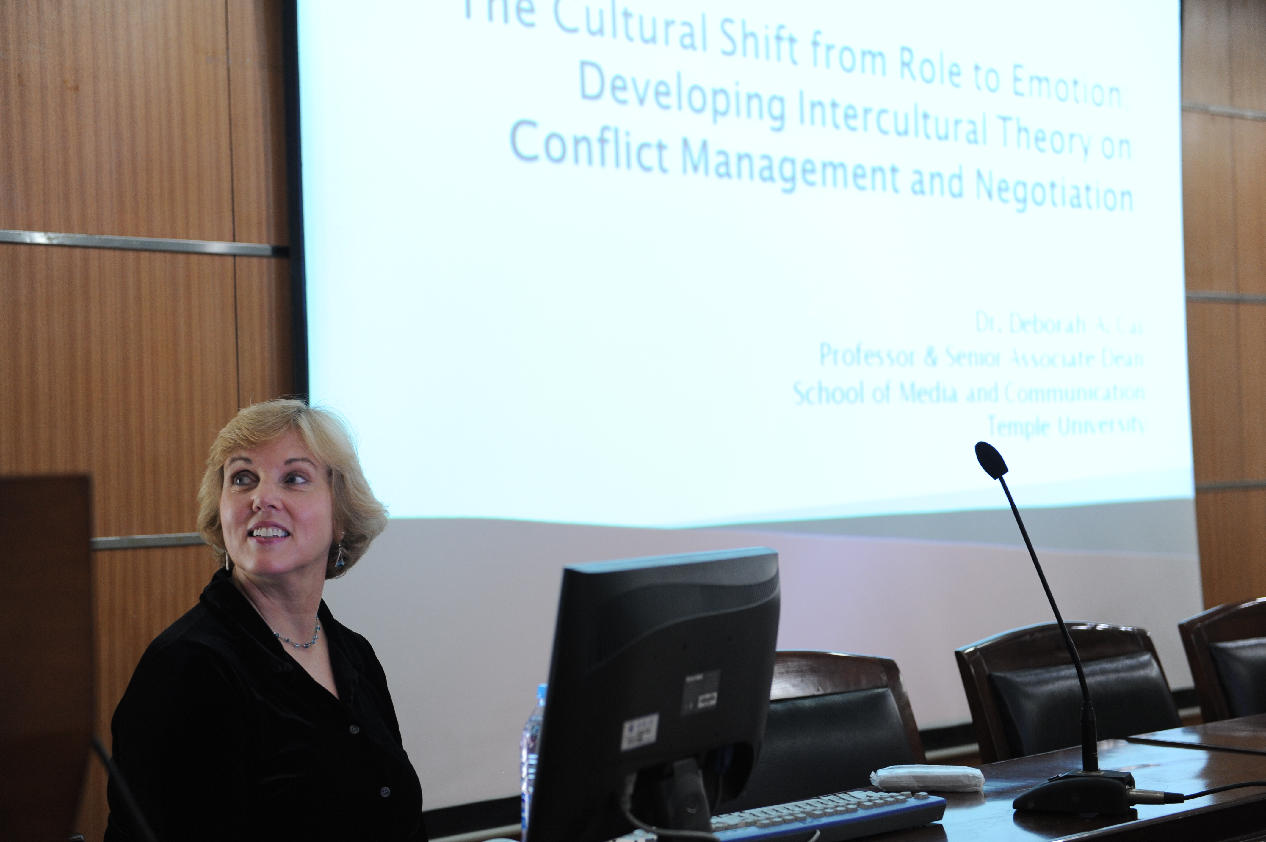 10月9日,美国天普大学媒介与传播学院副院长德波拉·A·蔡(Deborah A. Cai)访问第一版主 ,就双方院系间的合作交流进行了商谈,并为全院师生做了题为“冲突管理与协商研究中的跨文化理论转向”的精彩报告。