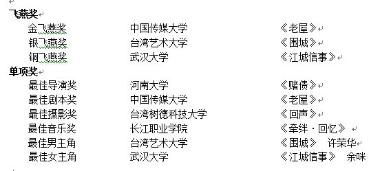 微电影获奖名单
