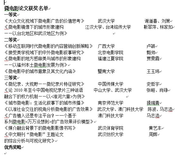 承办。本次微电影高峰论坛共评选出获奖电影8部,获奖论文26篇,现将获奖名单公布如下: