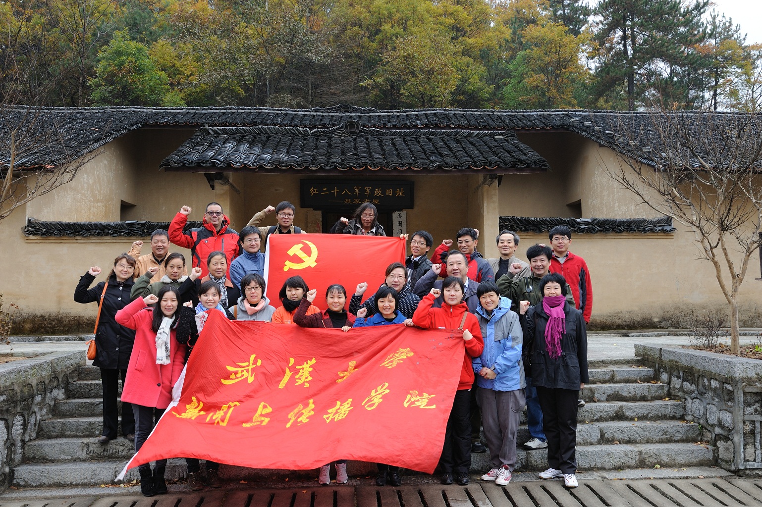 11月9日,大家抵达鄂皖交界处的红二十八军军政旧址接受革命传统教育。一行人冒着寒风细雨在红二十八军纪念碑前庄严承诺:以党员为骨干,加强行政能力建设,为学院的教学科研工作服好务;加强党员的先锋模范带头作用,加强凝聚力建设,保障学院工作高效、高质量的完成。