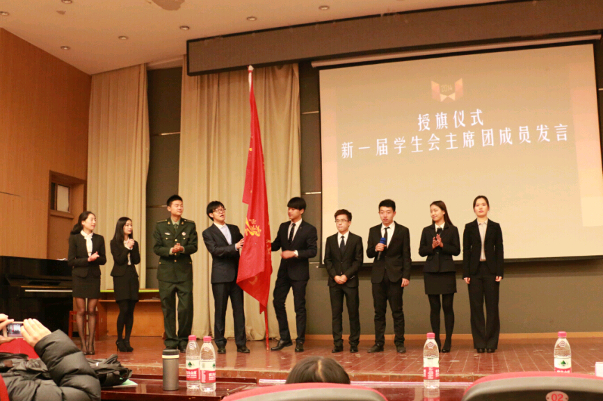 2014年12月18日下午18时许,在新老两届主席团成员完成换届仪式后,第一版主 第十四次团员代表大会暨学生会代表大会圆满落幕。(院团委学生会新闻部 丁钰淋 )