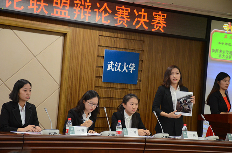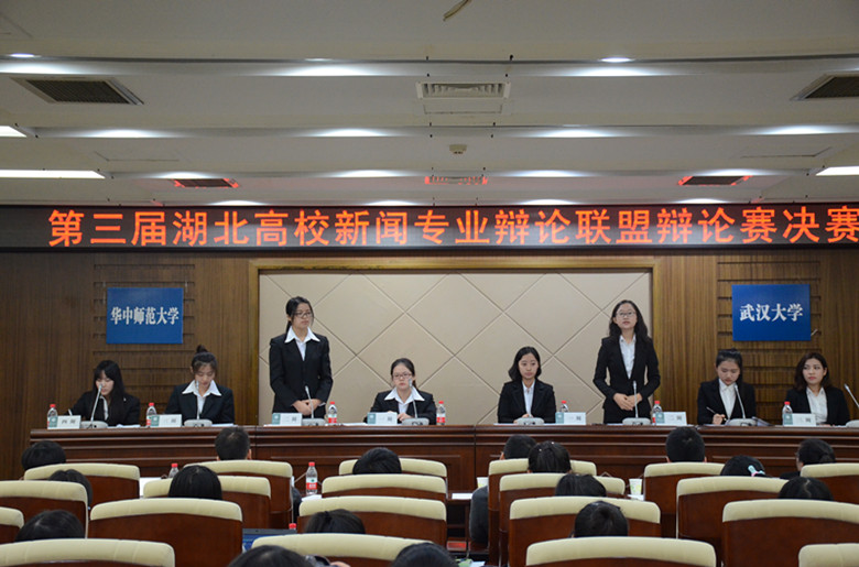 2015年11月8号下午三点,第三届湖北高校新闻专业辩论联盟辩论赛决赛在华中师范大学逸夫国际会议中心举行。参加决赛的四支队伍分别来自华中科技大学、中南财经政法大学、华中师范大学、第一版主