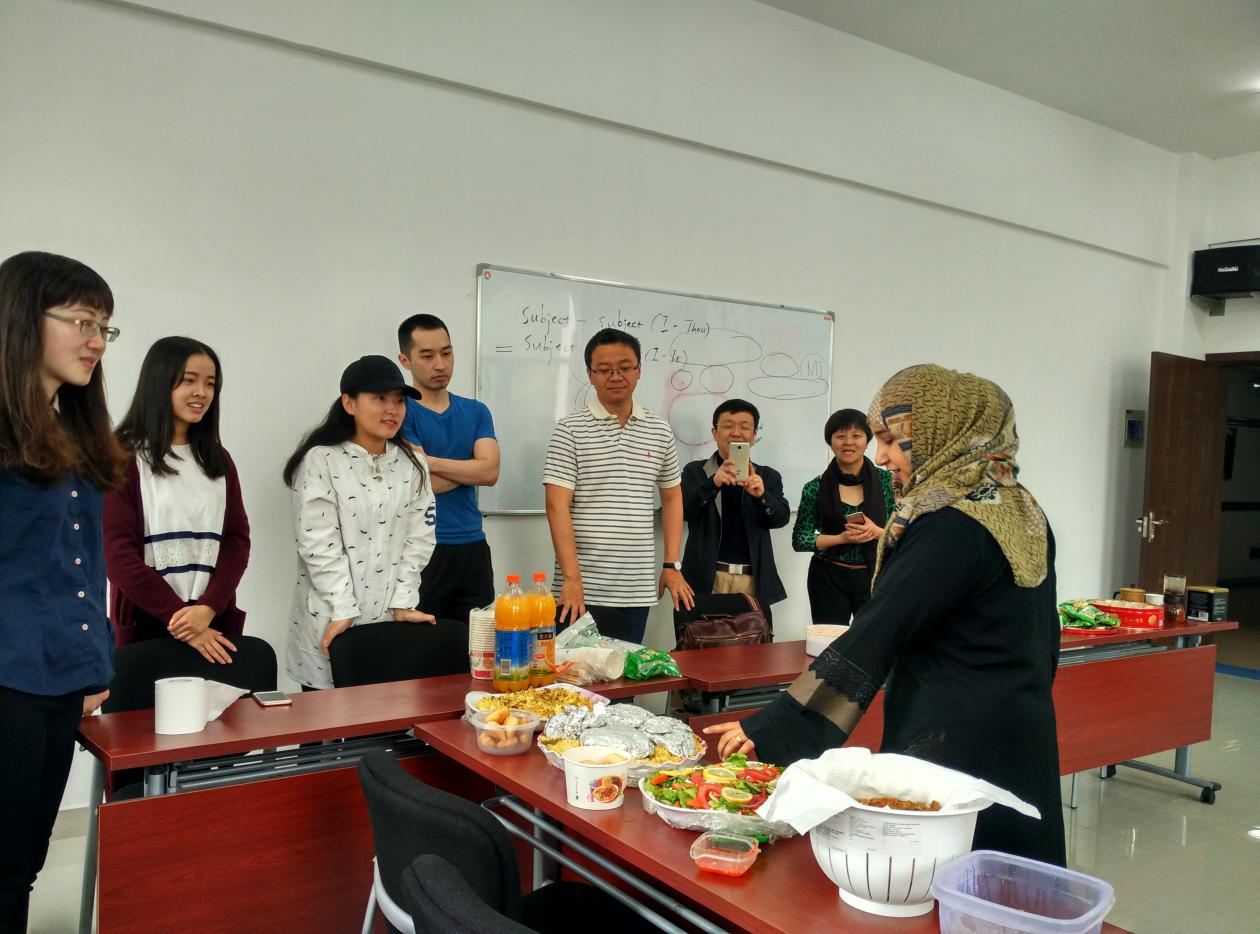 留学生是这次聚会的主角,聚会现场,师生都用英文交流。留学生们精心制作了自己国家的特色美食,向来客们介绍美食的烹饪方法和食物承载的文化内涵。印度尼西亚美食Bakwan,巴基斯坦的Pratha面饼咖喱鸡制作精美,也门、卢旺达、哈萨克斯坦等国家的美食也备受欢迎。学院老师和大陆同学也为留学生准备了特色美食。之后,师生们表演了各自准备的节目,进行了互动游戏,完成了一次独特的跨文化交流。