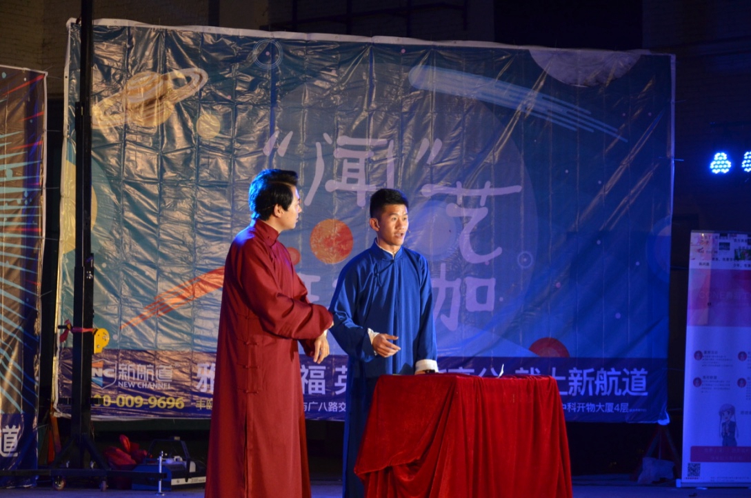 情歌串烧的声音浪漫澎湃,而前相声社社长徐若华与学生会主席杨绍湫学长献上的相声《新与旧》,则诠释了什么叫“接地气”的声音。他们吐槽了传统与现代艺术的交流和碰撞,乐翻了台下。最后,一曲由Big Bang歌曲改编的“相声式RAP”赢得观众的高声欢呼。