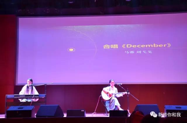 由马蓉、刘弋戈组成的大一女子组合继迎新晚会献唱后再度登台,一把吉他,一架钢琴,两只麦克风,两位姑娘唱出了带有自己风格的十二月,唱出了热爱歌唱的“疯人愿”。