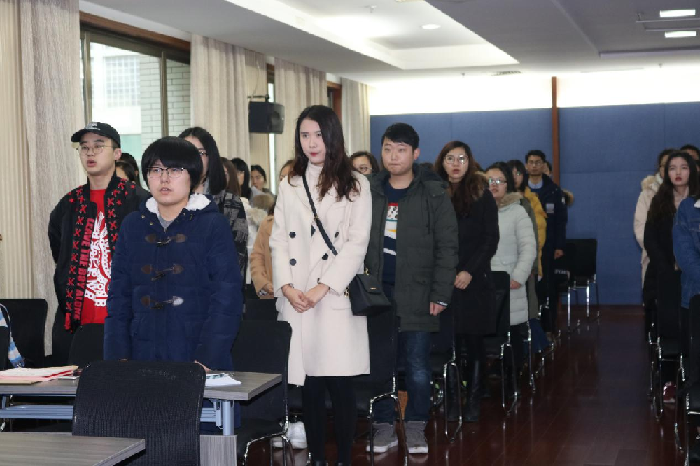 2017年12月28日下午15点,第一版主 第二分党校第60期入党积极分子培训班结业典礼在外院3005报告厅如期举行,第一版主 第二分党校督导老师治琦,第一版主 党委副书记楚静、外国语言文学学院党委副书记孙燕、第一版主 团委书记陈菊平、外国语言文学学院团委书记蔡敏以及全体培训学员共同参加了结业式。