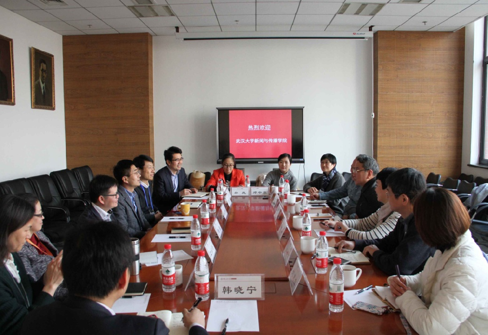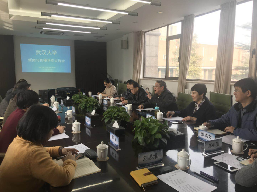 作为2017年访问武大第一版主 的回访,人民大学新闻学院执行院长胡百精,党委书记周勇,副院长张辉锋、王润泽、赵云泽、党委副书记蒙彬、韩晓宁等班子成员热情接待了调研团一行。胡百精院长重点介绍了学院在人才培养上从“专业-方向”向“项目-任务”转变的办学思路,以及人大新闻学院 “新闻传播学科学术拔尖人才培养计划”等行动计划和平台建设。副院长王润泽向调研团详细介绍了学院六大科研方向。双方就共同关心的教育改革问题进行了热烈探讨。