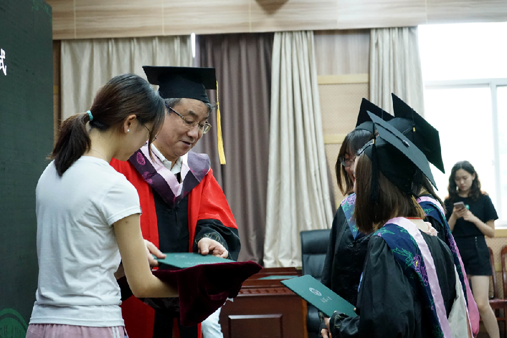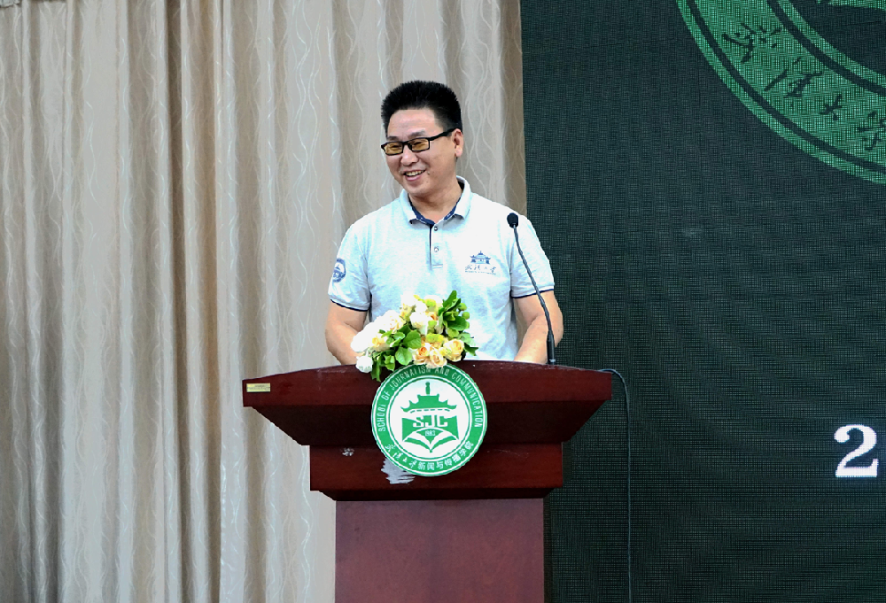 接着是15级广告、广设专业班级导师徐同谦作为教师代表发言。发言中,他提出了自己的期待,期待所有的毕业生学会理解和宽容,放弃以自我为中心,创造更好的人际关系。注重踏实肯干,把珞珈山水所赋予的内涵和气质转化为生产力。学会感恩,无论是父母、师友还是学校,感恩一切值得感恩的人或事。珞珈山下,我们留下了自己的足迹,武大不仅是我们人生中停留一个站点,更是我们心灵的驿站,我们永是珞珈一少年。发言在“前程666”的祝愿声中和大家热烈的掌声中结束。