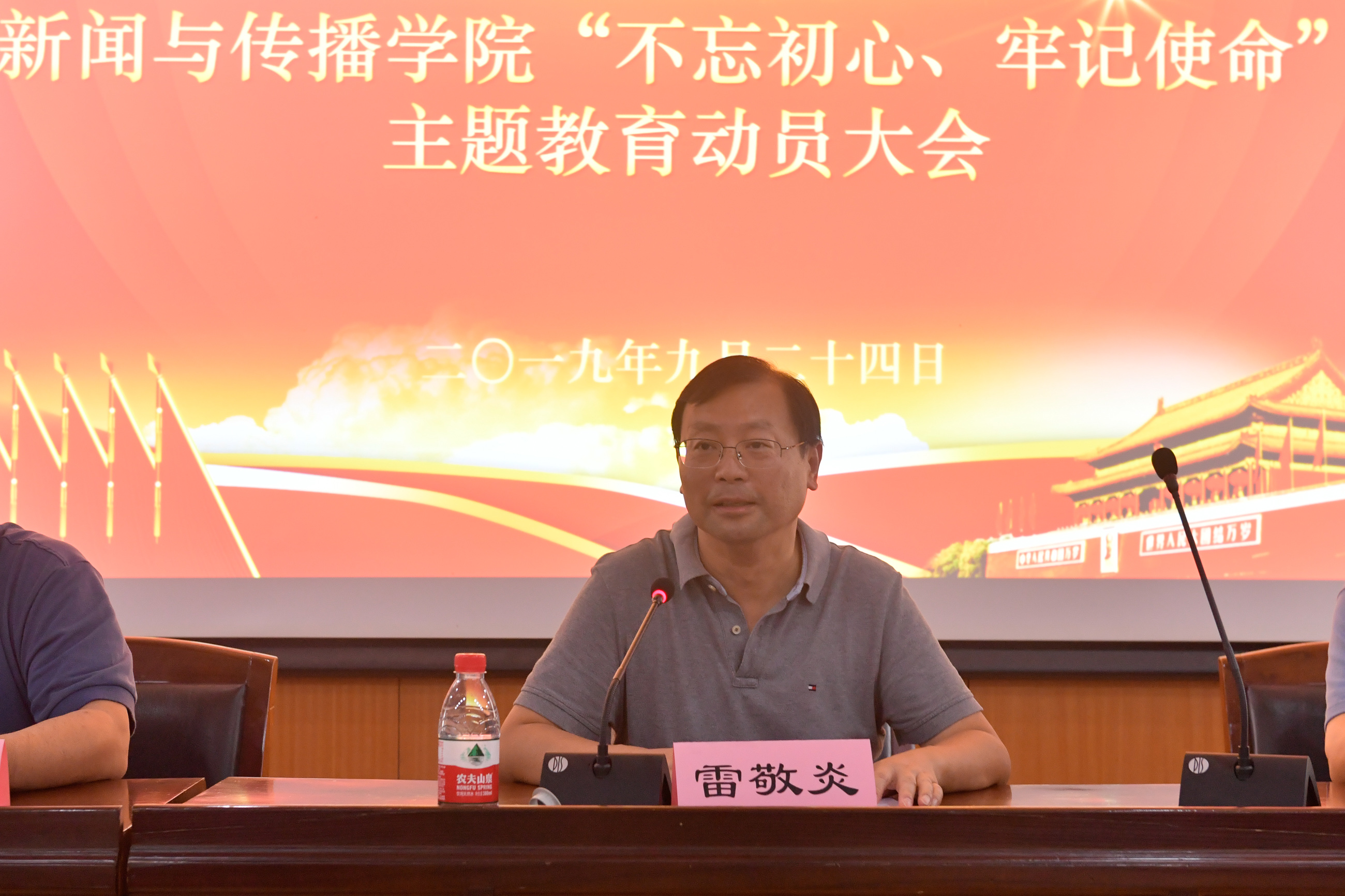 9月24日下午,第一版主 召开“不忘初心、牢记使命”主题教育动员大会。学校主题教育第五巡回指导组组长雷敬炎、副组长陈琛、联络员梅芸,学院领导班子成员,系主任,全体教职工党员,离退休教职工党支部书记、党员代表,全体学生党支部书记、学生党员代表参加了本次动员会。会议由院长强月新主持。