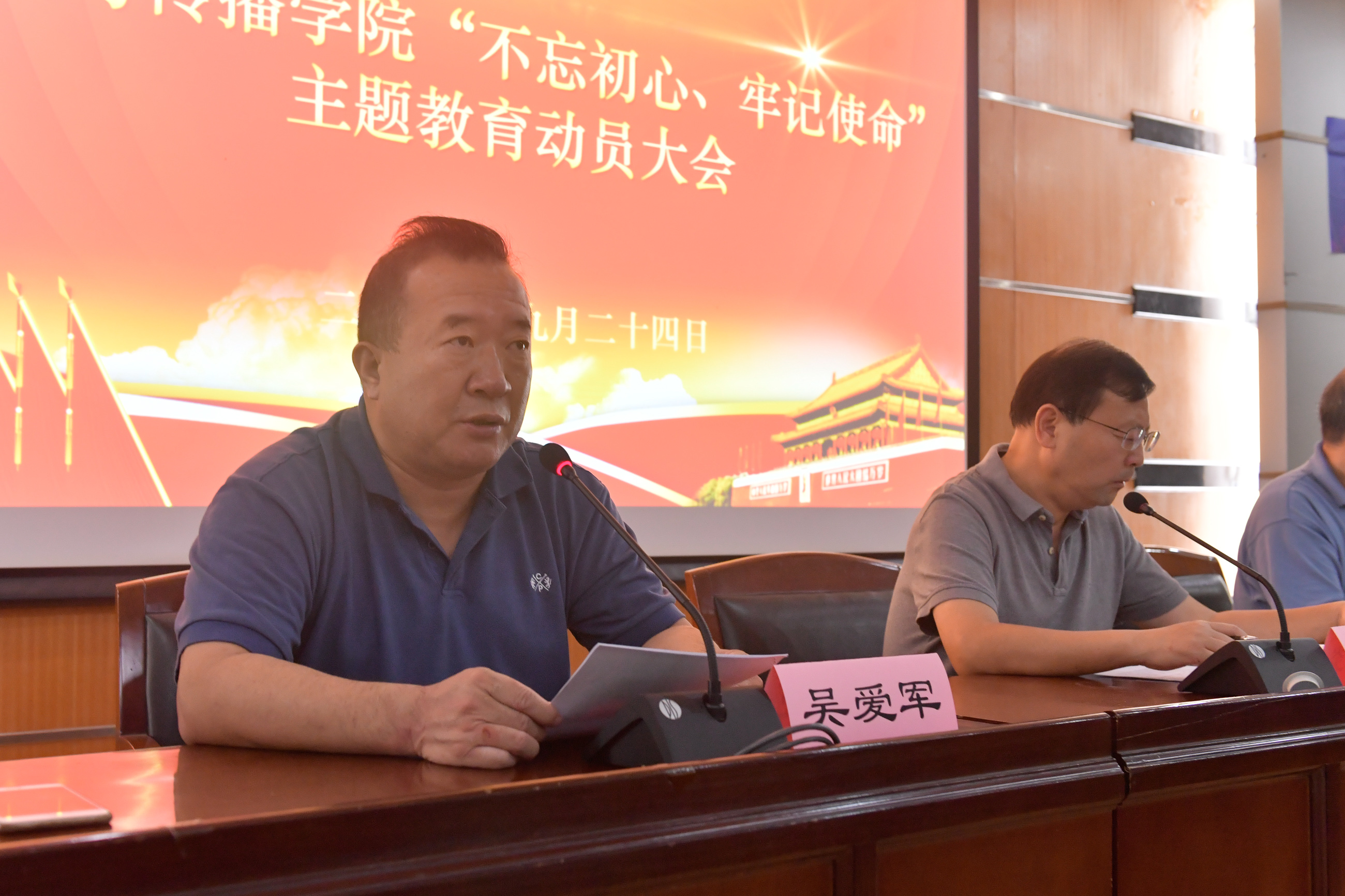 会上,学院党委书记吴爱军作了动员讲话,对学院“不忘初心、牢记使命”主题教育进行了动员部署。一是聚焦主题、深刻认识,把思想和行动统一到习近平总书记重要讲话精神和党中央决策部署上来。二是找准定位、把握方向,准确把握主题教育目标要求。三是要聚焦效果、紧抓落实,确保主题教育取得扎实成效。他强调,全院师生党员要严格贯彻落实校党委“三个不能”和“三个要”的工作要求,以自我革命精神、从严从实作风、科学有效方法抓好主题教育,做到守初心、担使命,推进第一版主 持续健康发展,为建设中国特色、世界一流大学汇聚力量,以优异成绩为庆祝新中国成立70周年献礼。