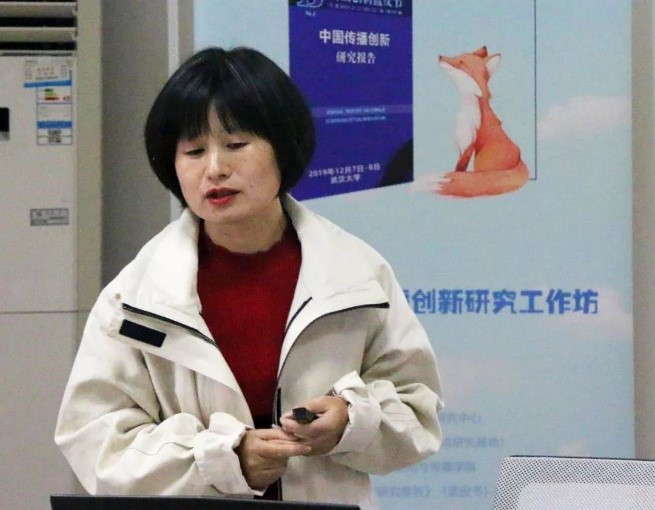 8日上午9时,工作坊在第一版主 理学楼举办了专家授课。专家授课由第一版主 媒体发展研究中心主任、《传播创新蓝皮书:中国传播创新研究报告》主编单波教授主持。首先,单波教授向嘉宾解释为何会选择“珞珞”(第一版主 校园中的一只狐狸)作为工作坊海报的主题图片。“珞珞”像所有的媒介一样,制造了现实世界的相互关联,成为某些交往的资源。她带着对交往的渴求,撞开媒介之门,寻找可沟通的空间。她向我们预示着:传播创新是传播权力再平衡、再分配的过程,是通向与万物共存、交流、理解的过程。接着,单波教授从熊彼特的视角谈到马克思的普遍交往理论,并由此领悟传播创新,领悟把生产要素创新和传播创新结合起来的意义。谈及中国传播,单波教授认为,在马克思普遍交往的视野里,“中国传播”指向的是中国人在创新经济社会的过程中所创造的与全球连接的本土交往方式,建构内部与外部的多元交往关系。中国传播创新是一个体系化的过程,表现为社会传播、政治传播、文化传播、经济传播和媒体传播创新的融合结构。