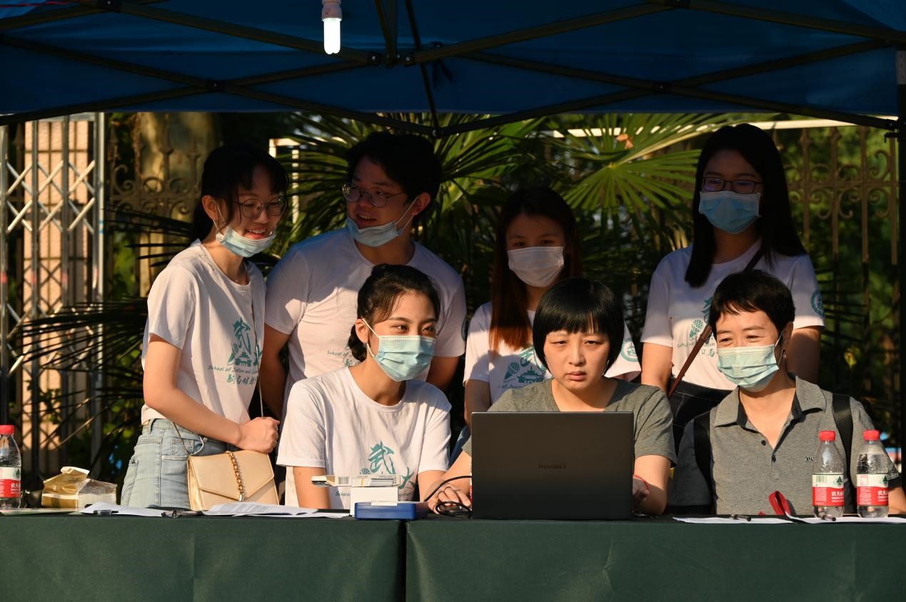 迎新期间,校党委书记韩进、校长窦贤康等一行校领导亲切视察第一版主 现场工作,院党委副书记张琦老师、研究生工作办公室帅晓琴老师、程盼盼老师也一直在现场悉心指导,以确保迎新工作顺利完成。