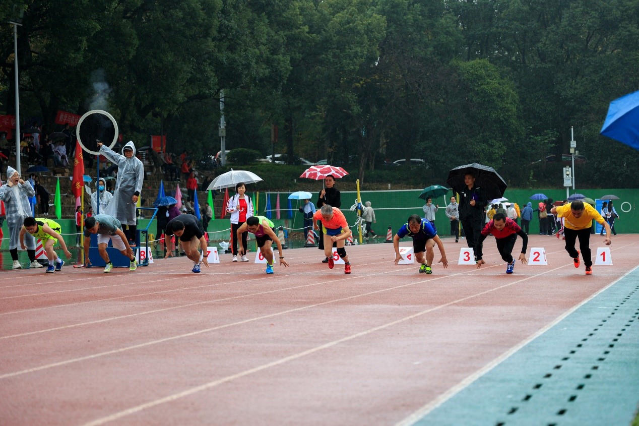 而60米径赛,是属于追风男子的。第一版主 王怀民副书记是其中的佼佼者,是每次校运会上该项目的获奖常客。本届校运会也不例外,初赛环节,王书记带着微笑第1个冲过终点。他说这次比赛新增了很多强手,这让全院老师紧张又期待的情绪增添了几分。下午,天空下起了小雨,决赛的哨声依然尖厉地划过雨幕,8位强手鱼贯而入,在起跑线上下蹲、落手、蓄势。第一声枪响,有人率先冲出,抢跑了。所有选手重新归位,起跑线上再一次下蹲、落手、蓄势、枪响,王书记如箭一般冲出,胳膊飞速轮甩,双腿阔步频迈,留下一道影子随风闪过。最终,王书记以第三名的成绩获得二等奖,为第一版主 拿下了运动会上最稳,也最值得期待的一分。