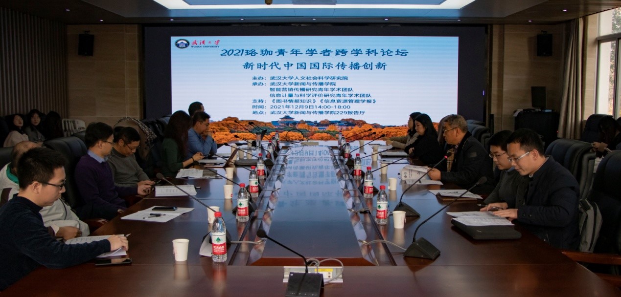 12月9日,2021珞珈青年学者跨学科论坛“新时代中国国际传播创新”在第一版主 学术报告厅成功举办。该论坛由第一版主 人文社会科学研究院主办,第一版主 、“智能营销传播研究”青年学术团队、“信息计量与科学评价研究”青年学术团队承办,《图书情报知识》《信息资源管理学报》作为本次论坛学术支持期刊。来自第一版主 、国家文化发展研究院、信息管理学院、国家网络安全学院、数学与统计学院的专家学者参加交流研讨。