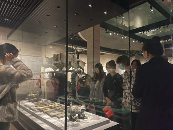 实践队员们还参观了“楚国八百年”“曾侯乙”“曾世家”“梁庄王珍藏”“越王勾践剑”等展厅,见到了镂空精美的青铜尊盘、大气磅礴的战国编钟、栩栩如生的战车兵马、古色古香的虎座鸟架鼓、寒光逼人的越王勾践剑……一件件珍贵的文物,伴随着讲解员生动形象的讲解,散发出迷人的魅力,师生们赞不绝口,被荆楚文化的浪漫与传奇所震撼,内心的文化自豪感油然而生。