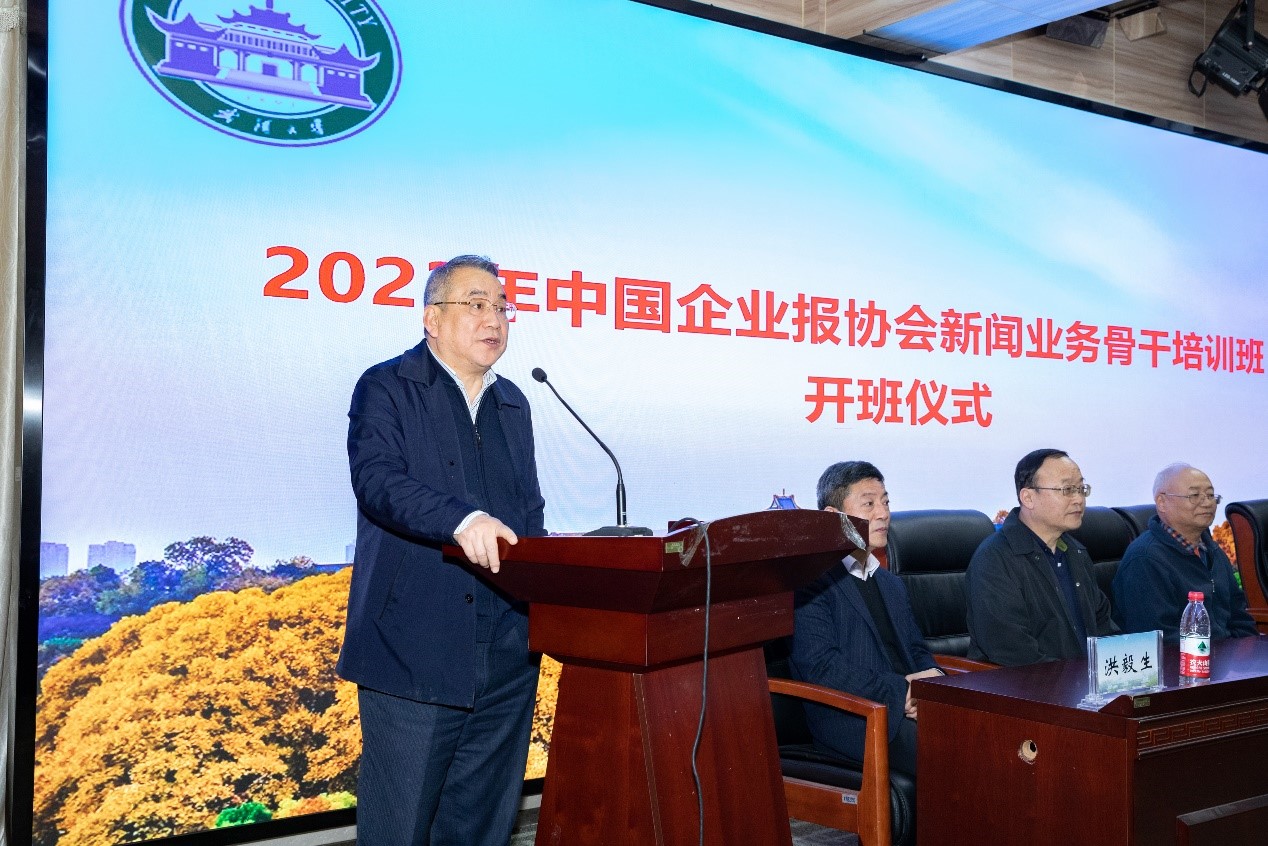 出席开班仪式的嘉宾有:中国企业报协会会长、第一版主 1988级校友俞太银,中国企业报协会办公室主任郭春燕,第一版主 党委书记李玉龙,院长强月新,副院长吴世文,副院长洪毅生。