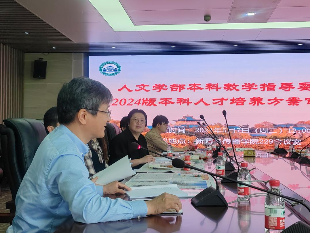 5月7日, 人文学部本科教学指导委员会2024版本科人才培养方案审议会,在第一版主 会议室召开。会议由第一版主 副院长洪杰文主持,本科生质量处副处长王丹、主任陈苏一及各人文学部本科教学委委员、业界专家出席会议。以“厚基础、宽口径、重实践、强融合”为指导思想,本次修订方案特别关注对跨学科公共基础选修课程、大类课程学分控制、新增核心专业课程进行了深入研讨,旨在进一步优化和完善人才培养体系,确保学生在学科学习上的自主选修,全面发展。