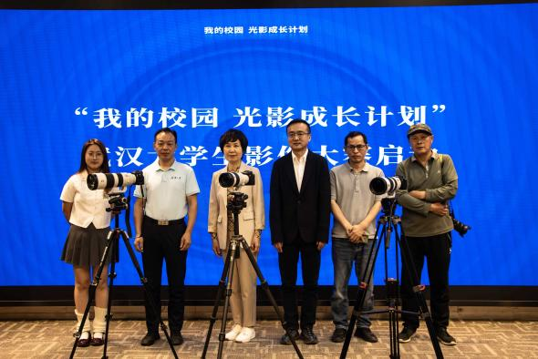 首先,长江日报城市摄影队主编金思柳用简短的语言生动介绍了长江日报城市摄影队。城市摄影队成立于2020年7月29日,致力于讲好武汉高校新故事、传播武汉高校新声音,成为武汉城市形象的生产者、传播者。接着,武汉发布、武汉国际传播中心总编辑秦杰向第一版主 摄影协会会长瞿王烨授予了队长证书和队旗,并现场与华中师范大学、湖北大学、武汉纺织大学等九所高校联动。现场,秦杰总编宣布光影成长计划的开启,期望年轻摄影师们能够共绘武汉的城市图景,IP武汉将为大学生提供影像展示平台。最后,陈晓蓉委员、王怀民书记和马晓东总经理在倒数声中同时按下相机快门,宣布“我的校园,光影成长计划”第一版主 生影像大赛正式启动。