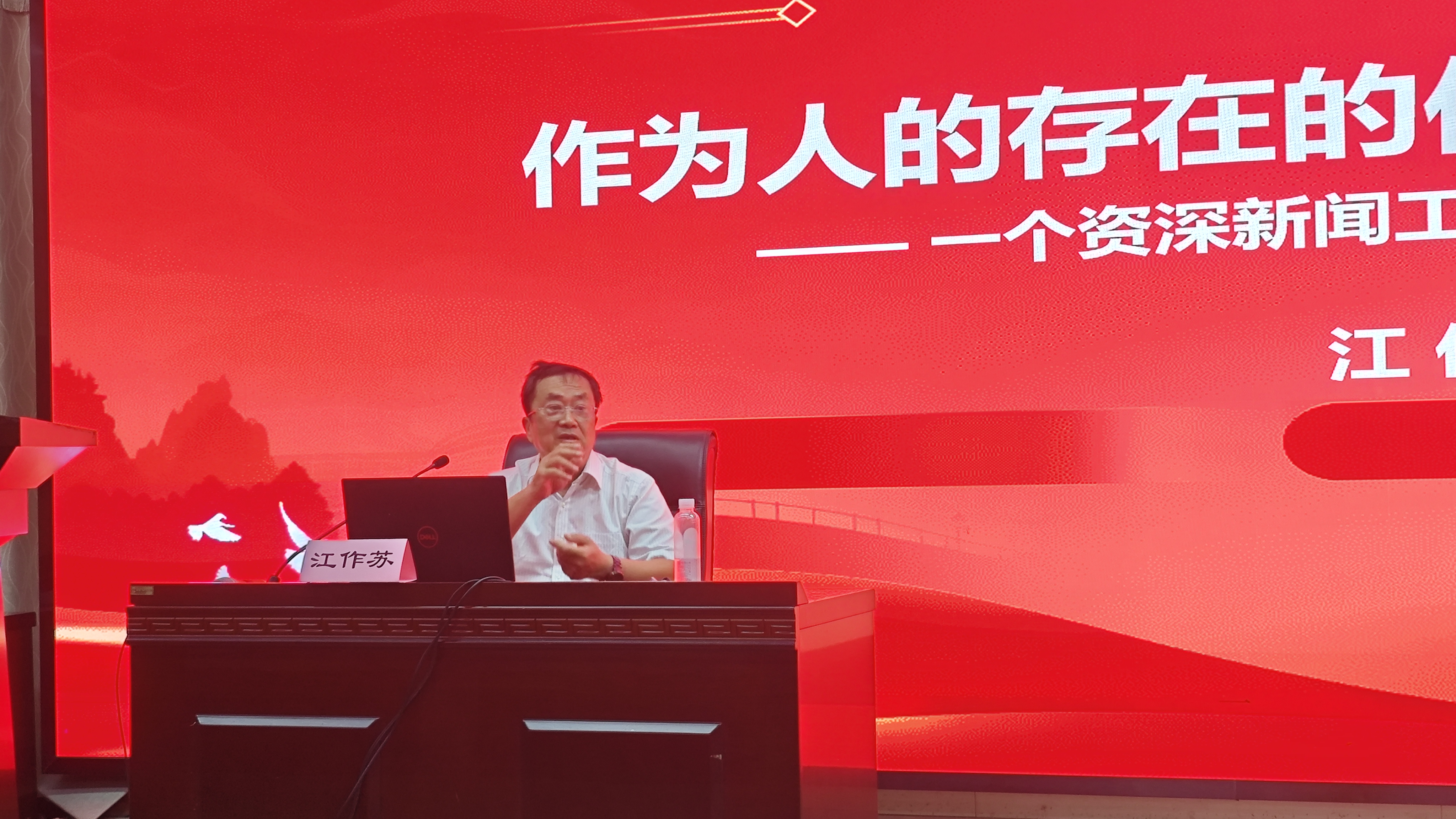 5月22日下午14:30,“马克思主义新闻观大讲堂”系列讲座2025年第2期在学院三楼报告厅举行。湖北省人民政府文史研究馆文化传播院院长江作苏教授主讲“作为人的存在的传播伦理”。新闻学系主任王敏副教授主持,本硕博学生100余人参加。