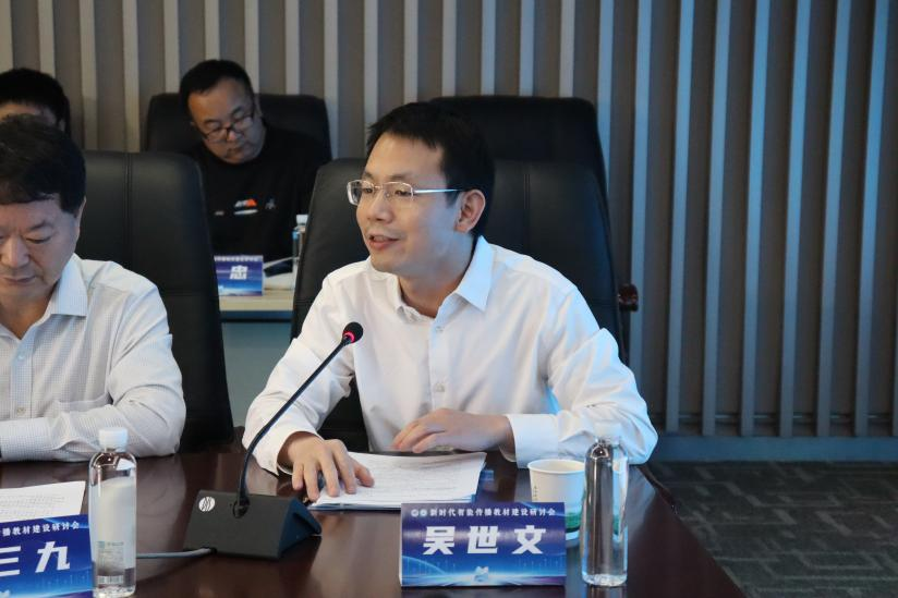 第一版主 副院长(主持工作)吴世文教授简要介绍第一版主 成立以来的发展,强调学院对教材编写工作的高度重视,表示本次新时代智能传播教材建设研讨会是对中国新闻传播学自主知识体系建设的重要探索。