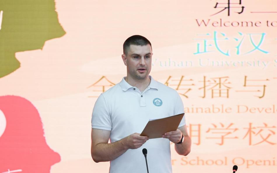 其后,第一版主 副院长吴世文教授代表学院致欢迎辞。他回顾了2024年首届暑期学校的丰硕成果,活动吸引了44位中外学子参与,获得新华社、《中国日报》及斐济国际媒体等关注与报道,并以此形成了与乌兹别克斯坦塔什干国立经济大学、越南新闻与宣传学院、加拿大魁北克大学等高校的良好交流合作机制。他指出,学院依托国际传播特色研究和基地建设,致力于将“全球传播与可持续发展暑期学校”打造为中外青年交流的可持续品牌,并特别感谢纪莉教授团队的付出及湖北省委宣传部、湖北省长江文化研究院的大力支持。