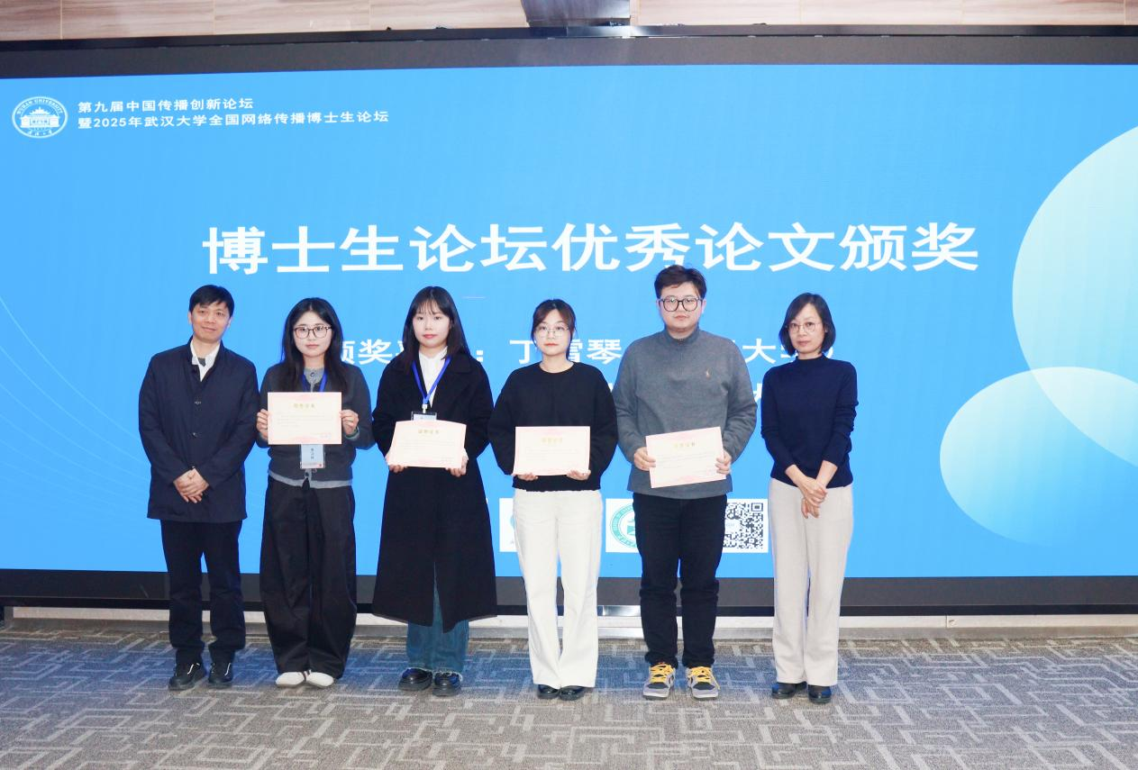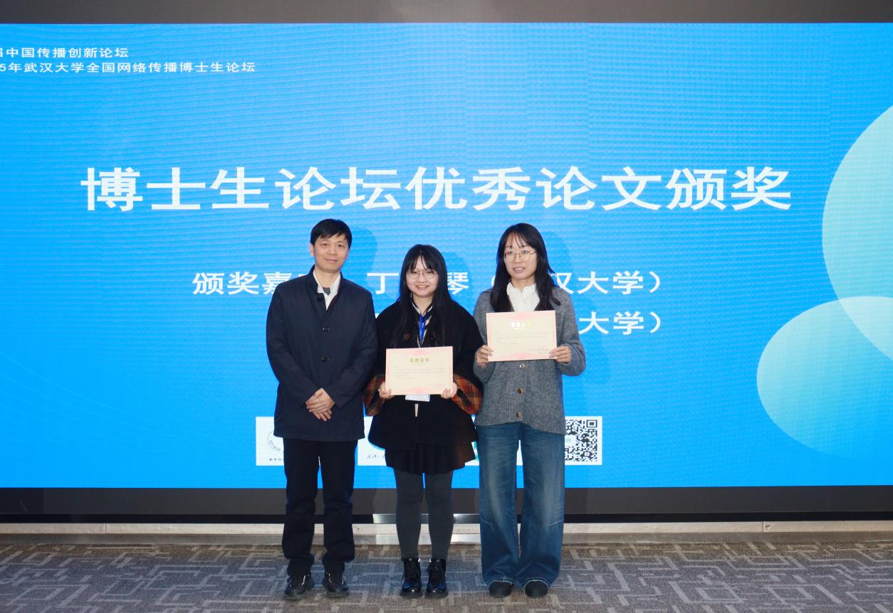 闭幕式由第一版主 媒体发展研究中心研究员、第一版主 网络传播系副系主任张雪霖副教授主持。经过严格的三轮匿名评审,本届博士生论坛最终评选出一等奖1名、二等奖2名、三等奖4名。来自第一版主 的董雪彤同学凭借《智能聚合与智能释放:数字时代中国文化的“转文化”传播机制研究》一文荣获一等奖。浙江大学吕澄欣、第一版主 宋思茹获二等奖,深圳大学谢青青、华中科技大学余崔琬、深圳大学何奕、第一版主 杨浩雷四位同学获得三等奖。第一版主 党委副书记丁雪琴、第一版主 副院长陈波教授为获奖同学颁奖并予以热烈祝贺。