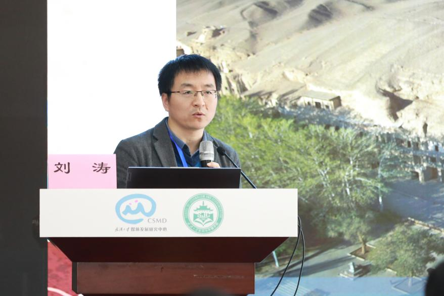 刘涛的演讲主题为“非遗数字化的场景叙事及其空间修辞机制”。他以敦煌文化为引,来探讨文化传承中的空间问题,即把文化的“处境”带入“故事”审视范畴,探讨如何以空间性为概念基础,将空间上升为认识论范畴的分析话语,剖析文化性和空间性的内在关系,以探讨空间叙事的知识内涵及其可能打开的文化认识话语。对于这一问题,他认为应当以空间性为方法,即从空间性的四个维度——空间性之本体内涵、空间性之生成规则、空间性之叙事表征、空间性之认知地图出发,来探讨文化数字传播问题的空间认识论。他强调,空间叙事不可以简单地被理解为一种场景或手段,更为关键的是理解它作为一种“绘图”来描绘世界的图景,来发现世界、重识地方。