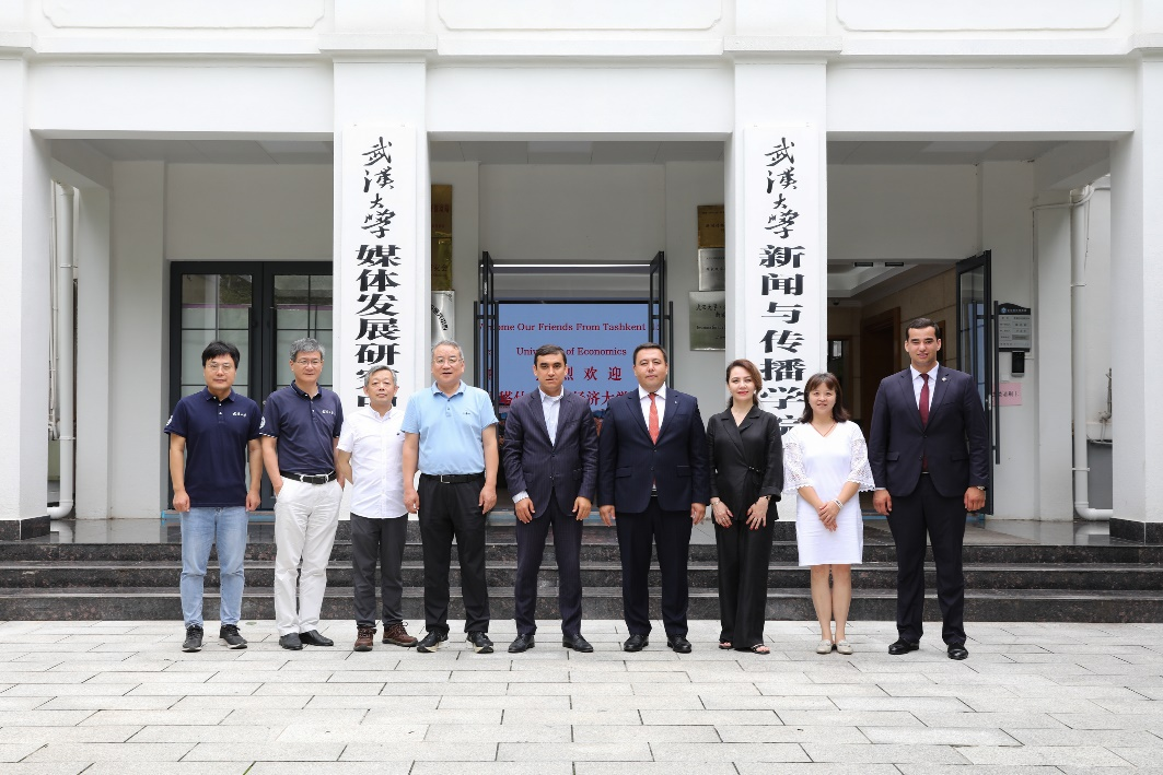 On the morning of July 4th, a delegation from Uzbekistan's Tashkent State University of Economics, led by Vice President Khalikov Ulugbek, visited our institute. The delegation was warmly received by Dean Qiang Yuexin, Party Secretary Liu Chaohui, Vice Dean Hong Jiewen, Professor Ji Li, head of the "Global Communication and Sustainable Development" program at Luojia Summer School, and Deputy Director of the Broadcasting and Television Department, Professor Ouyang Min.