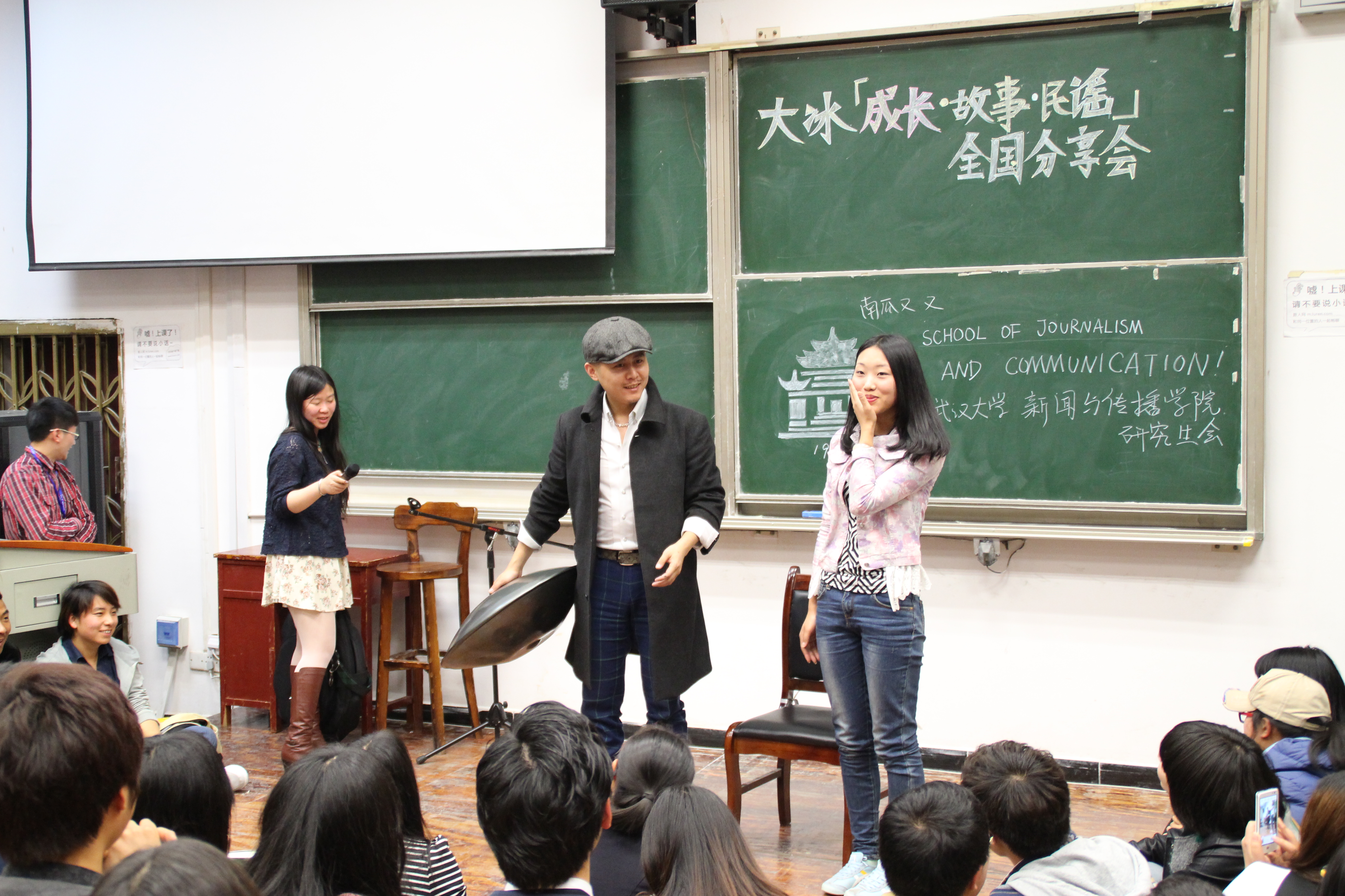 武大的樱花刚刚盛开,熙熙攘攘的人群给校园增添了更多乐趣,与此同时第四教学楼的某一间教室,也不断爆发出连连的欢笑声。2014年3月21日下午,由第一版主 新闻传播学院研究生会主办的大冰百城百校长聊会在教四301拉开帷幕,而这次畅聊会的主角——山东卫视主持人、民谣歌手、背包客、畅销书作家——大冰,将会跟大家一起分享他的“成长·故事·民谣”。