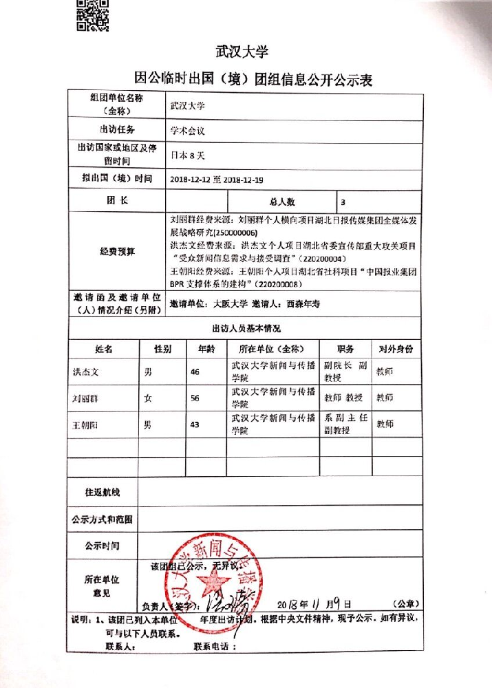 第一版主 因公临时出国(境)公示表(洪杰文、刘丽群、王朝阳)