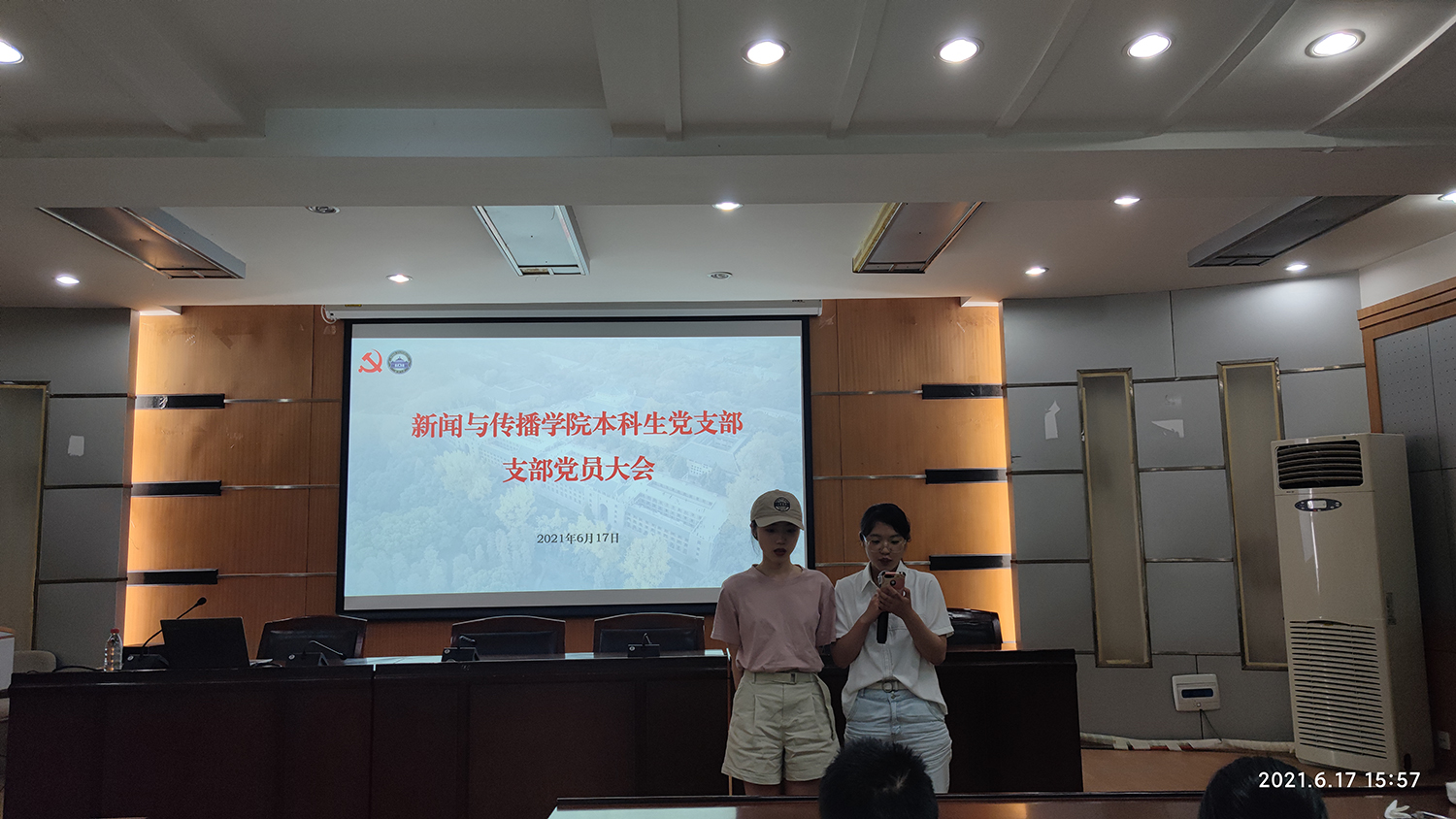6月17日下午,第一版主 本科生党支部党员大会在二楼报告厅举行,支部书记曾文鹏同志、支部监察委员余文嘉同志等91名党员参加了大会,其中正式党员17名。